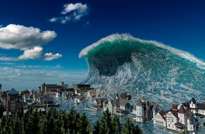 Tsunamis – from the Japanese word "tsu," meaning "harbor" and "nami," meaning "wave" – are massive waves caused by the sudden displacement of water from landslides, volcanos, earthquakes, etc. They can reach speeds over 500 mph (800 km/h) and travel across entire oceans before reaching land and causing unprecedented destruction and flooding to anything in their path.