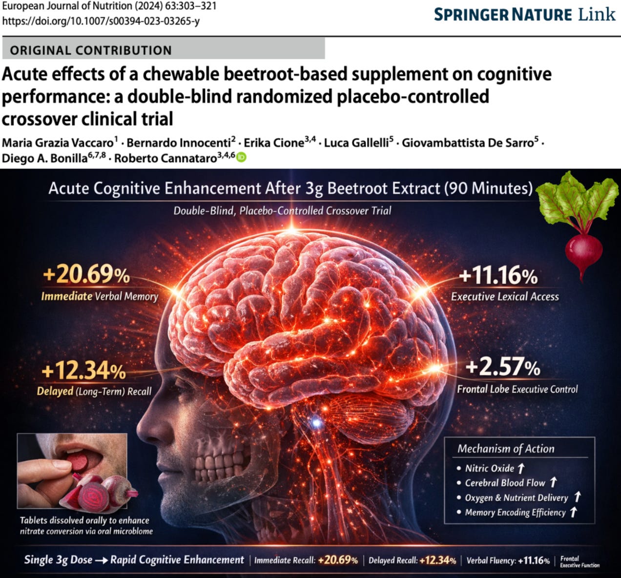 In a recent double-blind, placebo-controlled crossover trial published in the European Journal of Nutrition, researchers tested a single 3-gram dose of a Beta vulgaris (beetroot) extract delivered as four chewable tablets containing dietary nitrate. Participants dissolved the tablets in the mouth to enhance nitrate conversion via the oral microbiome, and cognitive testing was performed 90 minutes later.