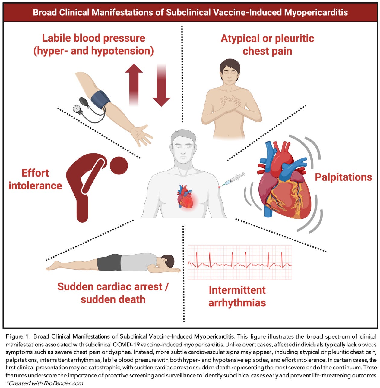 A silent epidemic of subclinical myopericarditis and heart injury is occurring beneath the surface — often without symptoms, without warning, and in some cases, with sudden cardiac arrest as the first sign of disease.