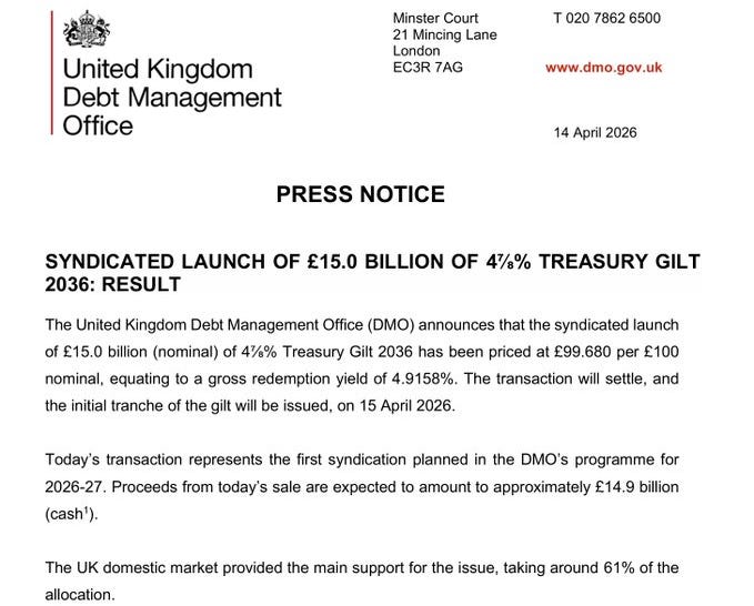 We also learned this week that the UK made the largest single gilt issuance in its history: £15 billion in a single day. What’s worse, it has done so at the highest yield in nearly twenty years.