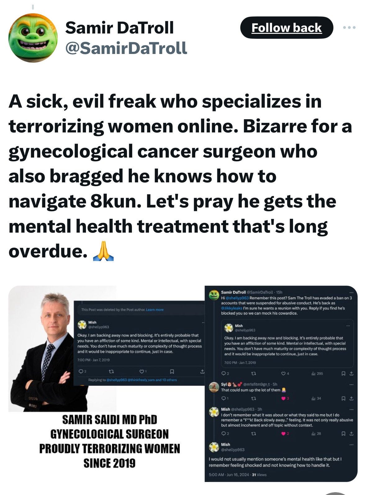 And here’s Jikky’s real identity - a psychotic, fake “doctor” whose specialty is bully and abuse women. He is not a real doctor however, he spends nearly 100% time online running trolling operations for whoever pays him to do that. Which is good news because he can’t physically hurt anyone any more: