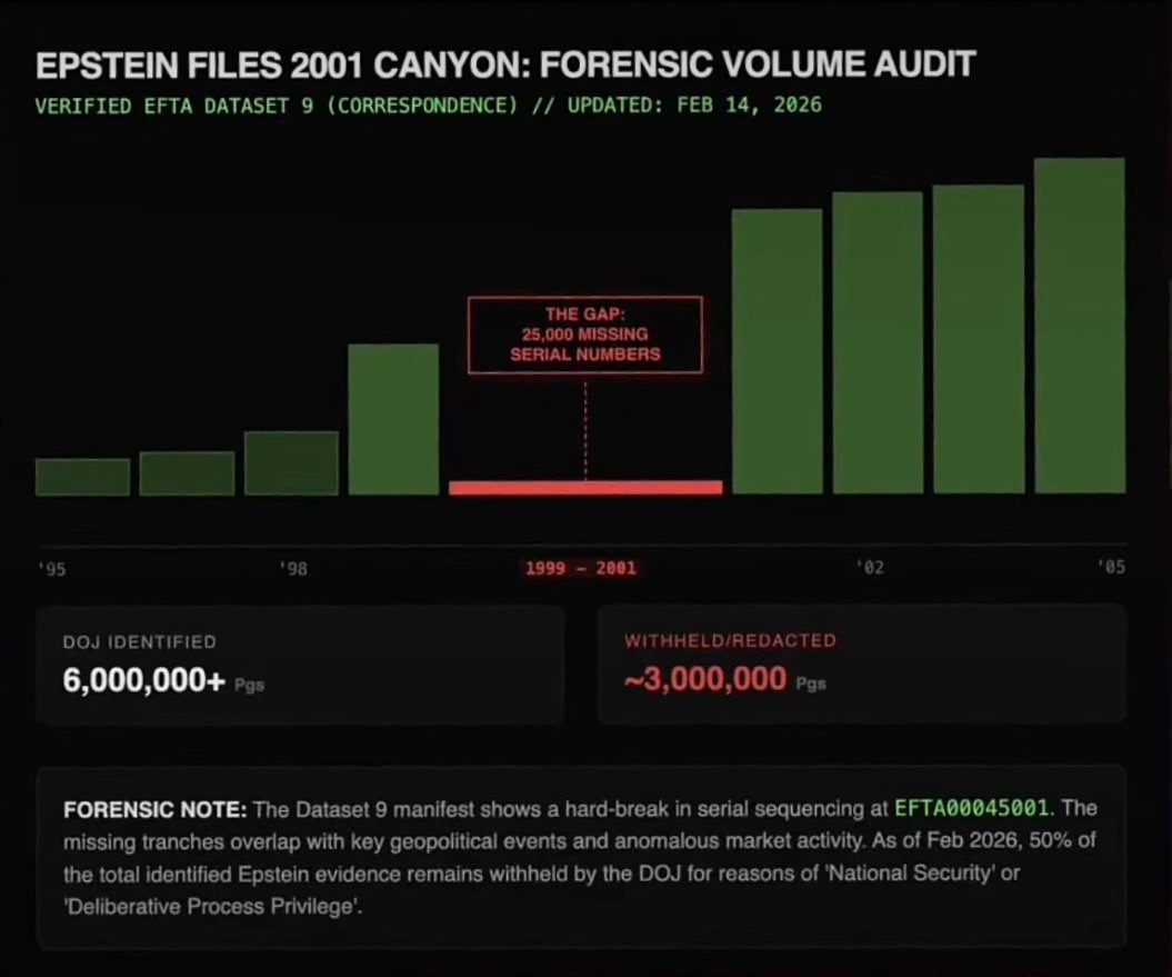 And that’s with only half of the files released. What could be in the other half? The question came up in a podcast last week, and I said that my guess would be that Epstein files might hide a lot of evidence about the 9/11 terror attacks. It was just a hunch, but over the weekend the following chart relatled to Epstein documents emerged: