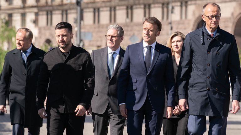 RT: FILE PHOTO: Vladimir Zelensky and European leaders on May 10, 2025 in Kiev, Ukraine. © Stefan Rousseau - WPA Pool/Getty Images
