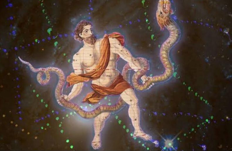 In Greek sky lore, Ophiuchus represents Asclepius, Greek god of medicine and doctors. He is always holding a great serpent or snake. And, depending on how it’s used, a snake’s venom can either kill or cure. It’s said that Asclepius concocted a healing potion from the venom of Serpens the Serpent, mixing it with a Gorgon’s blood and an unknown herb. This potion gave humans access to immortality, until the god of the underworld, Pluto, appealed to the king of the gods. Pluto asked Zeus to reconsider the ramifications of the death of death.