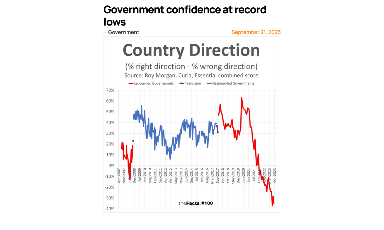 Of course, it wasn’t just Labour’s popularity that was plummeting – Ardern herself was losing supporters as well as creating more opponents amongst the public. Pollsters regularly ask the public about whether they have a favourable or unfavourable opinion of individual politicians.