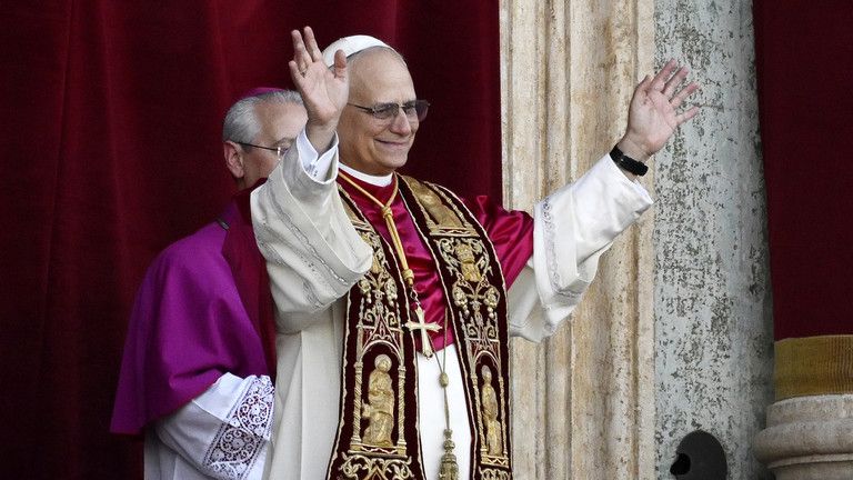 RT: The newly elected Pontiff, Pope Leo XIV is seen for the first time from the Vatican balcony on May 8, 2025 in Vatican City, Vatican. © Antonio Masiello / Getty Images