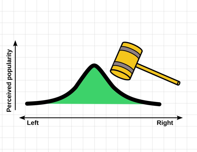 The centrist media, centrist politicians, and centrist bureaucrats create the perception of a political no-man’s-land where moderate right-wing critics were once were seen and acknowledged. In my diagrams, this no-man’s-land is the crush zone from the application of the metaphorical mallet. To the political centrist, creating the perception that most critics are “far right” extremist has a number of short-term advantages.