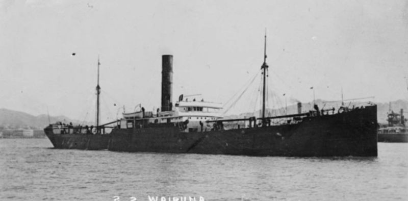 The steamer Wairuna, en route from Auckland to San Francisco, was captured by the German raider SMS Wolf on June 2, 1917 and later sunk near the Kermadec Islands. The crew was taken prisoner.
