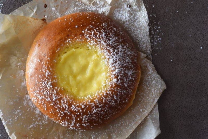 Use a small spoon or ice-cream scoop to press an indentation into the top of each bun. Scoop a dollop of custard into the indentation. Brush the dough with beaten egg. Bake for 20 minutes until golden.