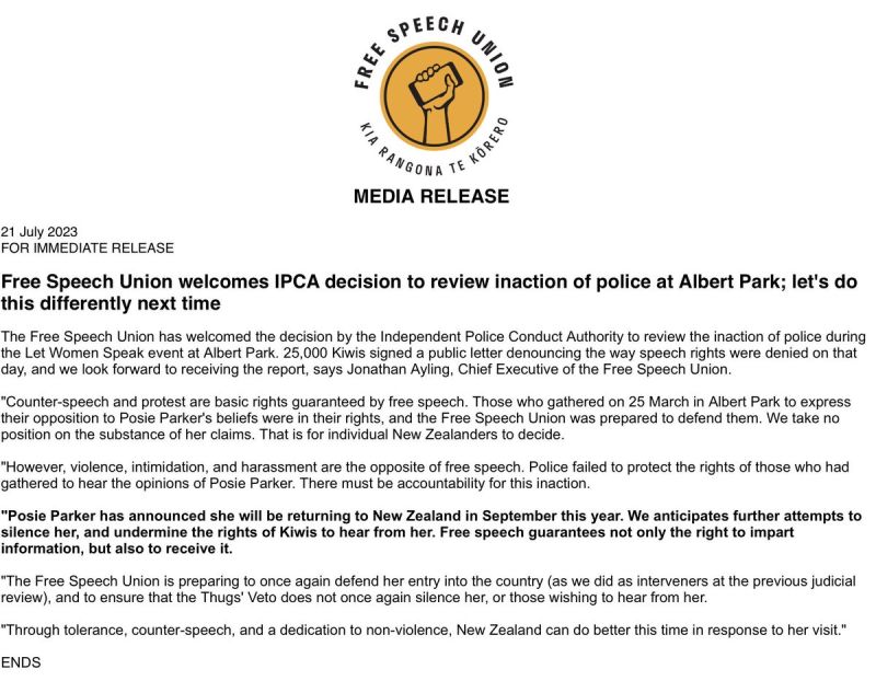 The New Zealand Free Speech Union is a registered trade union with a mission to fight for, protect, and expand New Zealanders’ rights to freedom of speech, of conscience, and of intellectual inquiry. We envision a flourishing New Zealand civil society that values and protects vigorous debate, dissenting ideas, and freedom of speech as cultural cornerstones. Media Contact- Jonathan Ayling 021 842 215 or [email protected] Website: www.fsu.nz