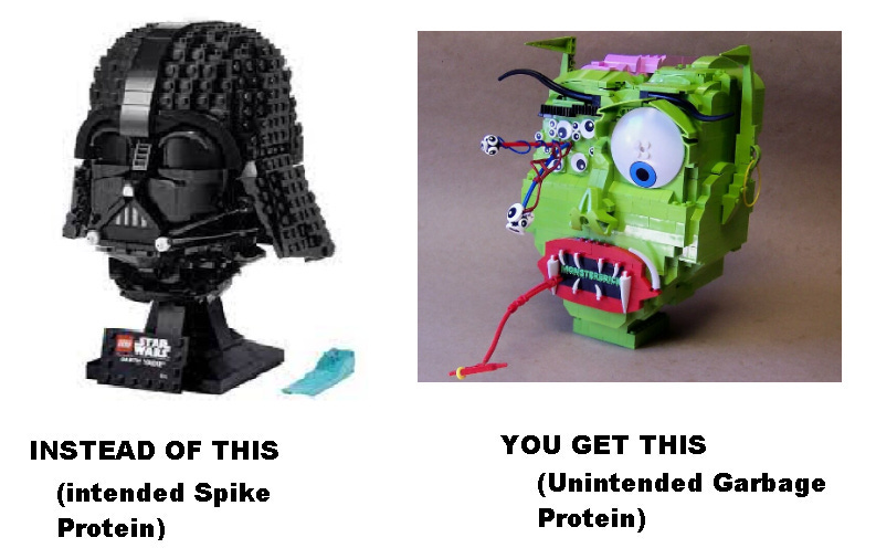 These aren't the intended spike; they're random bits that trigger immune attacks, including antibodies. But are they harmless, toxic, or cancer-promoting? Unknown. Health effects from long-term production? Not studied.