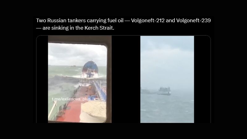 "Two Russian tankers carrying fuel oil — Volgoneft-212 and Volgoneft-239 — are sinking in the Kerch Strait," Belarusian media outlet NEXTA wrote on X.