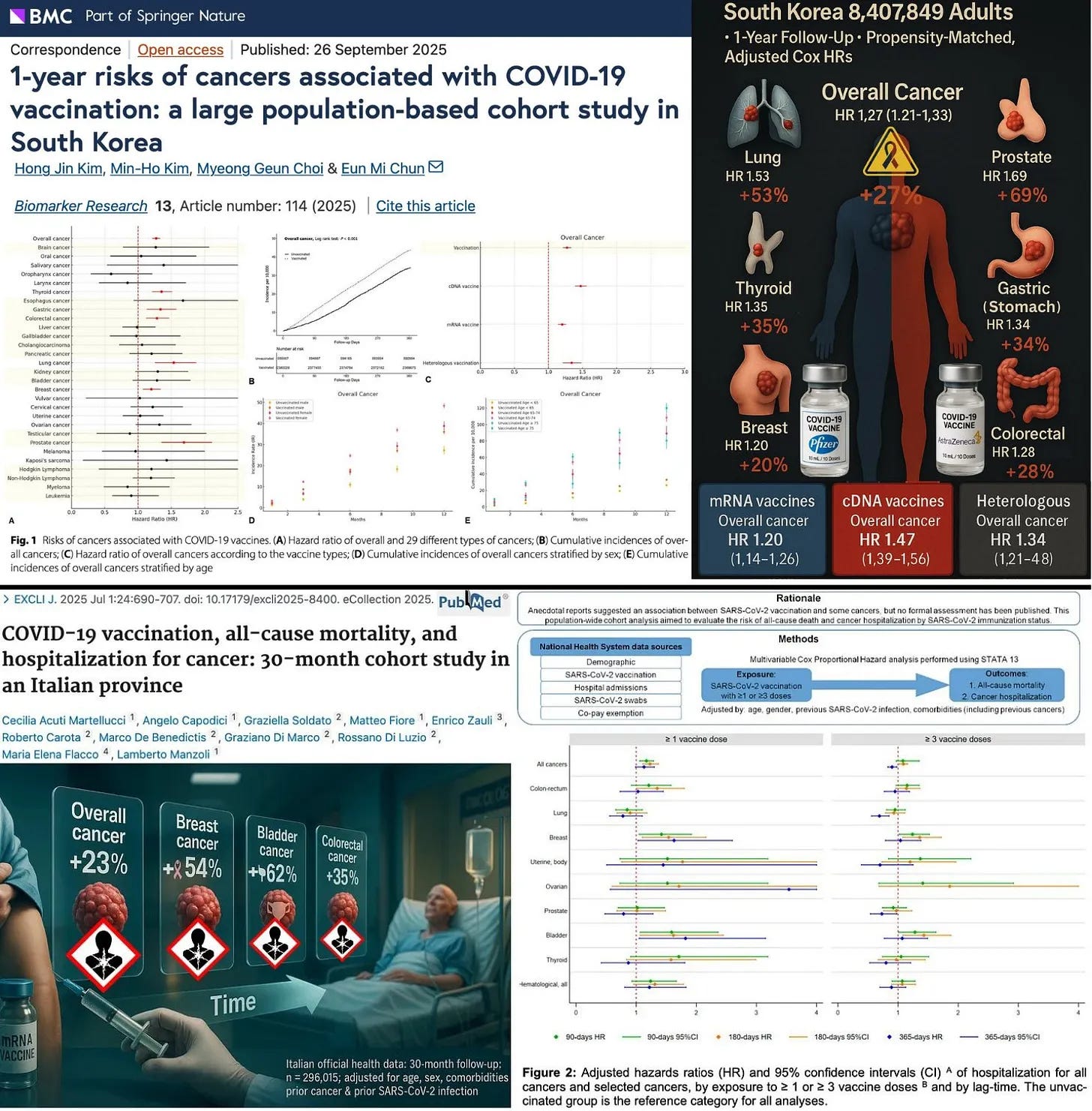 Lastly, two massive population studies (n = 8.7 million) now confirm elevated risks across seven major cancers among the COVID-19 vaccinated.